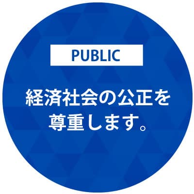 法人市民として、経済社会の法令を遵守し責任ある行動をとります。